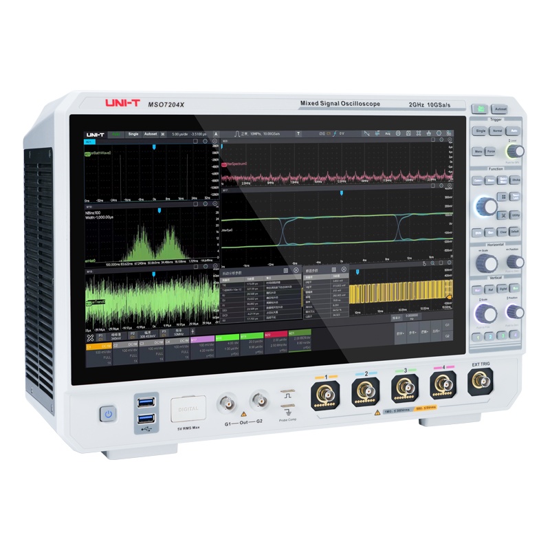 混合信號示波器,1GHz帶寬,10GS/s采樣率,1000000wfms/s波形更新率,4通道,16通道LA,雙通道60M AWG,15.6英寸觸摸屏。